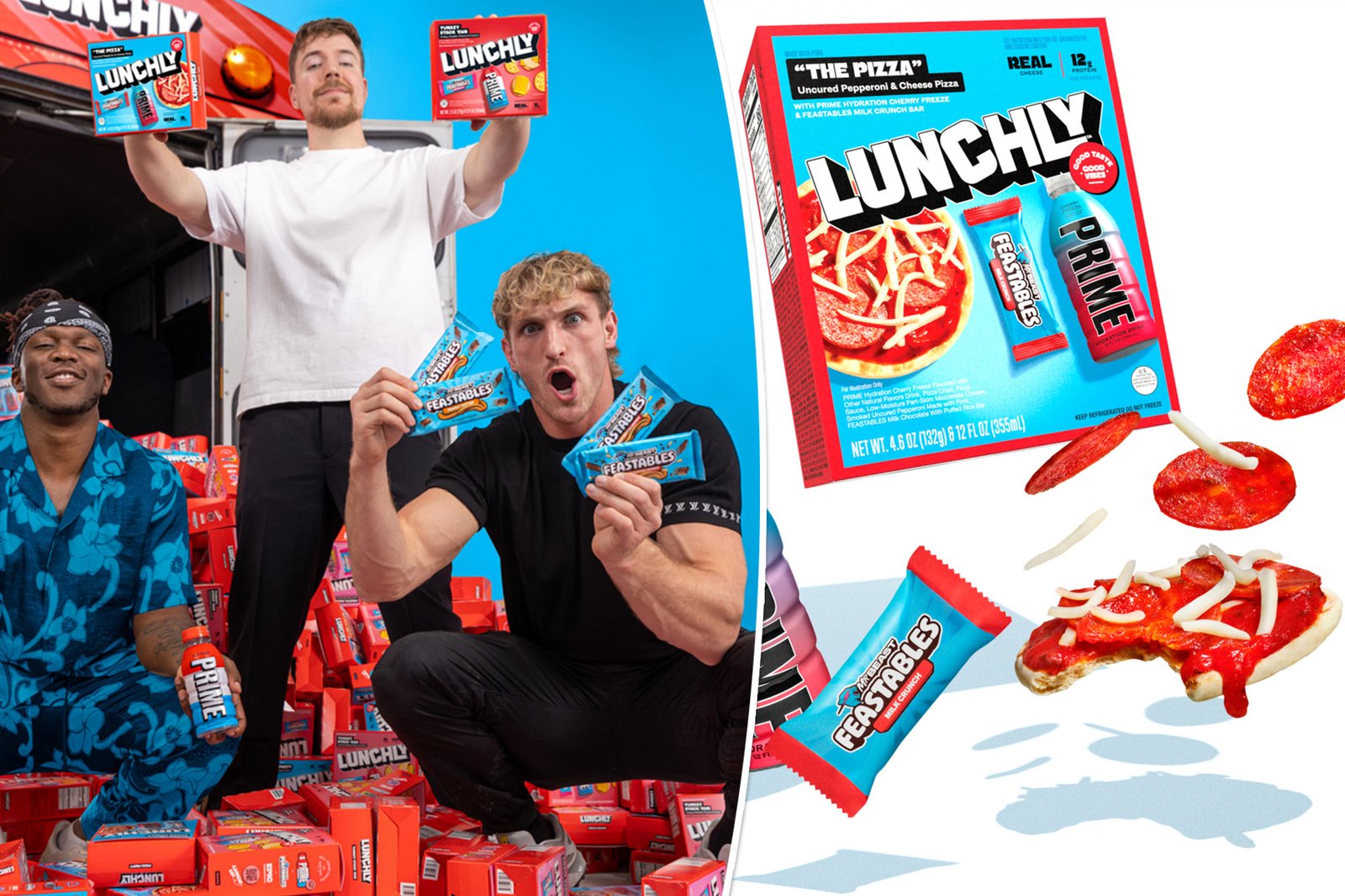 Lançado por Logan Paul, MrBeast e KSI, o Lunchly é uma linha de lanches que promete ser uma alternativa mais saudável para as refeições rápidas. Os produtos incluem três tipos principais: crackers de peru e queijo, nachos com salsa, e uma opção de pizza. Cada pacote é acompanhado por uma bebida esportiva Prime e um doce Feastables. As bebidas Prime são conhecidas por seu alto teor de eletrólitos, cerca de 400 miligramas por porção, o que é significativamente superior aos 55 miligramas encontrados nos concorrentes tradicionais como Capri-Sun.